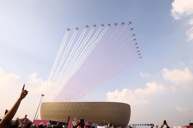 - ⦿Members of the Qatari Amiri Guard patrol exterior the stadium.